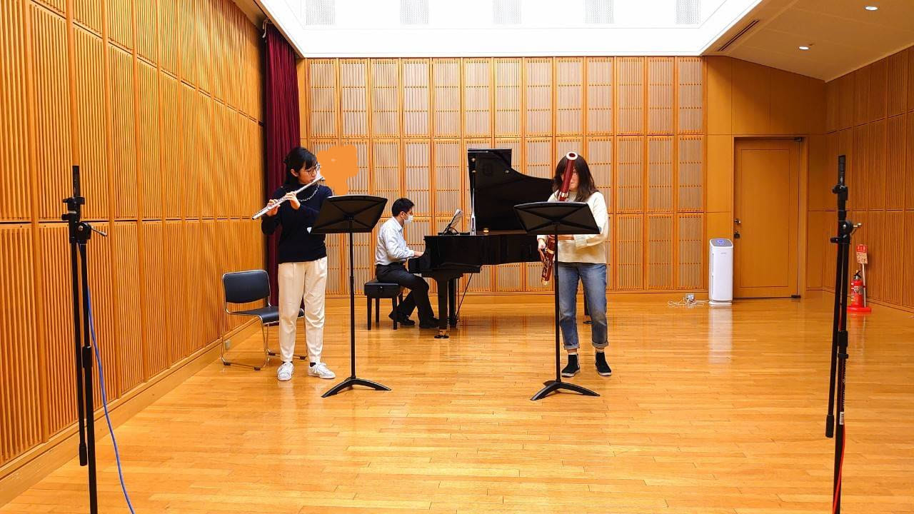 DANCES ファゴット版レコーディングしてきました。 未選択 2020年12月28日 1月から楽譜を発売する新曲「DANCES」のファゴットバージョンをレコーディングしてきました。フルート鈴木舞さん、ファゴット宮崎寿理さん、ピアノは綿引本人です。ジャズだったら「Watahiki Kotaro Trio」みたいな図ですが、クラシックでは言わないのかな…(・・;)。でも曲が少しjazzっぽいからそういうことにさせていただこうかなー。
